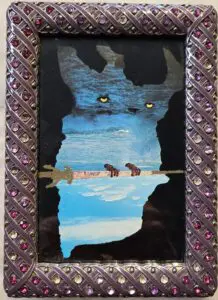 Art has been evolving for over a million eons. Mine has been unfolding for only 60 some years. Genetics have given me this ability to transform my thoughts into something visible. I can choose to or not to share these “objects” with others. I have had visions, ideas, stories, colors, words, music, and pictures in my brain for as long as I can remember and it is physically impossible for me not to want to apportion these concepts with others thus continuing the chain. My work is colorful, sparkly, mystical, silly, unique, primitive, spiritual, modern and ancient, hated and loved. I like to float, sink, chew, spit, mix and match. By putting it into the world, opinions and interpretations inevitably are formed. But that is our human prerogative, and like it or not, my art is here.