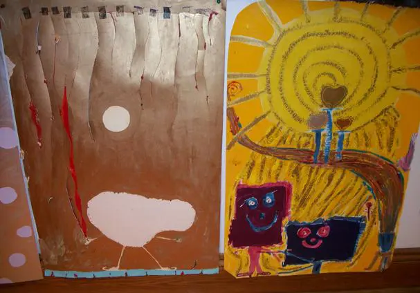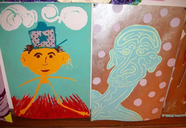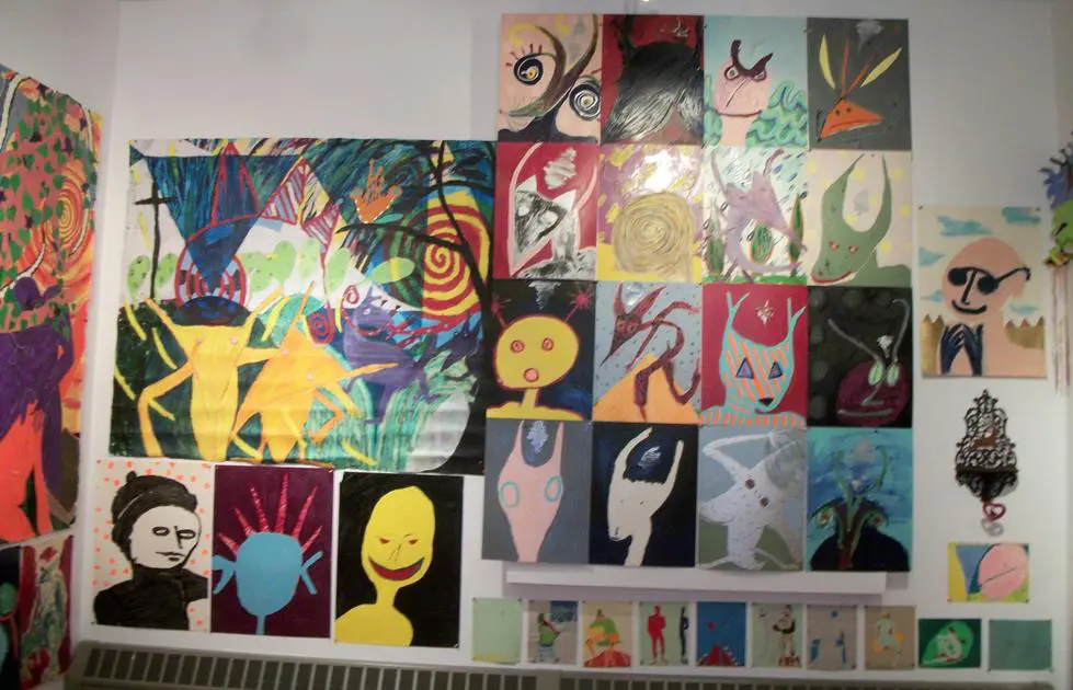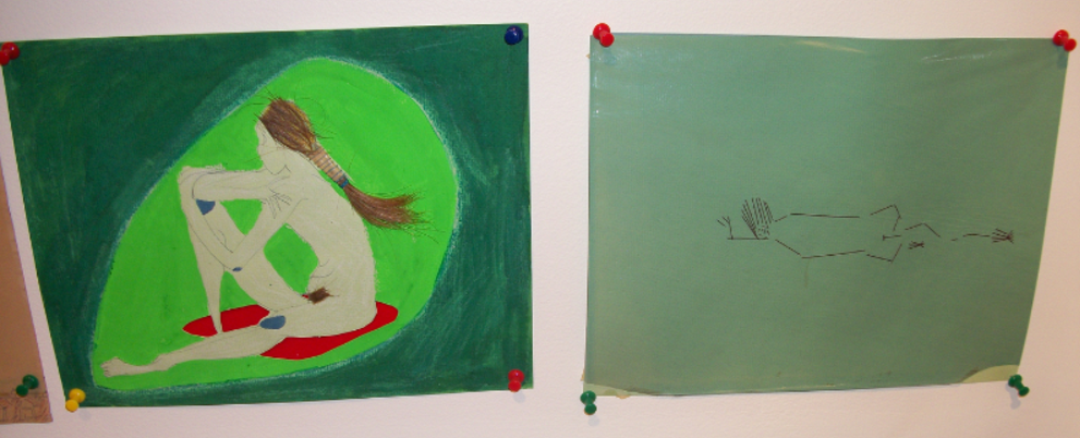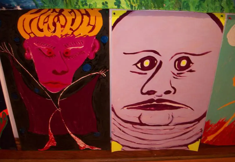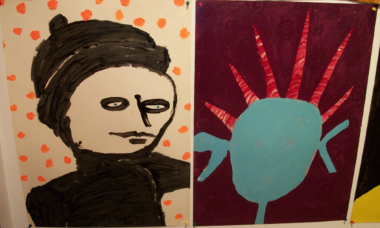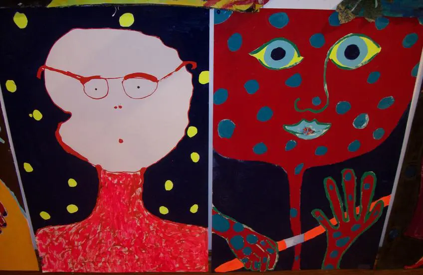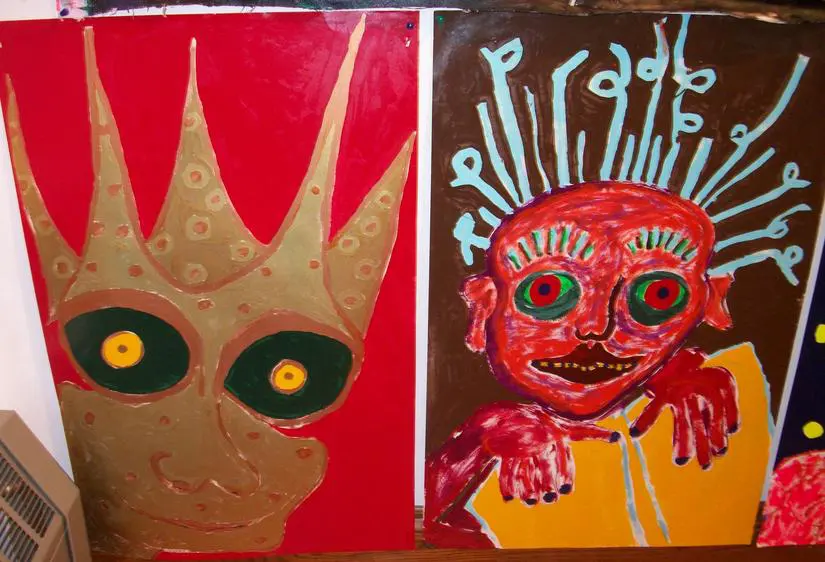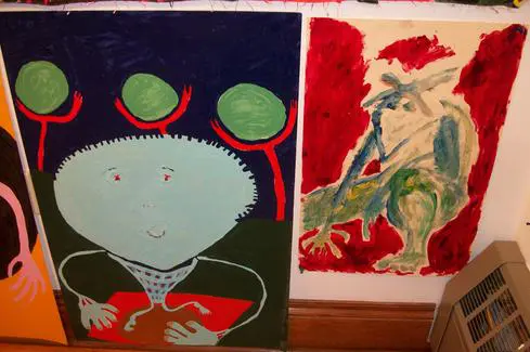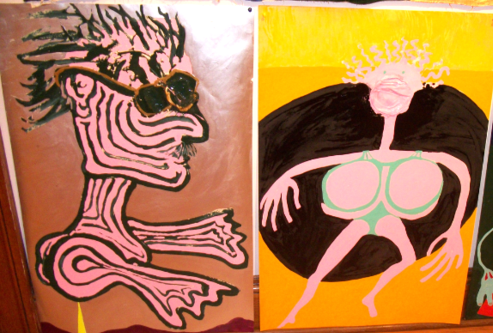 Friends/Portraits are earlier enamel on paper paintings that I started when I moved to Vermont. Because the experience of living in a place where I knew nobody except my children (who lived with me in three different houses in one year), was so foreign from anything else I had ever done, I decided to make my own friends. Eventually, I met people and had real friends, and when my husband died 9 months after I moved here, I stayed in Vermont because of the wonderful people. The smaller pieces done in mixed media are very old and were done in the 70's actually in Life Drawing Class.