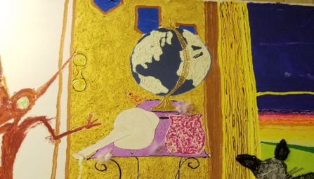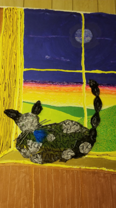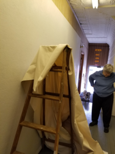 And I thought, performance involves the public and what we do here is a big melting pot, so I am going to incorporate the public into my project. I also know that many people come through the space (NAP) where this wall is, so it’s different than creating in a private space. I am demonstrating my way of working. It’s a public spectacle. I love it. Alchemists work anywhere. Most artists bring work that has been created in their studios to be hung on the project wall.